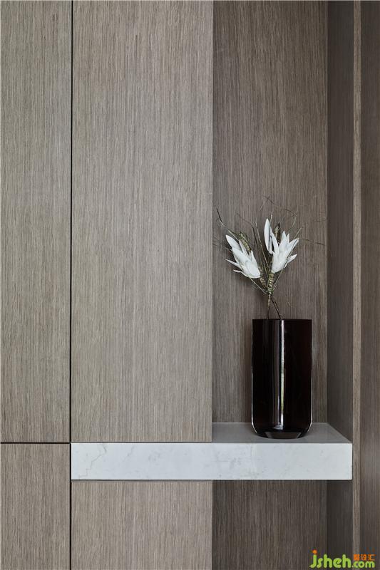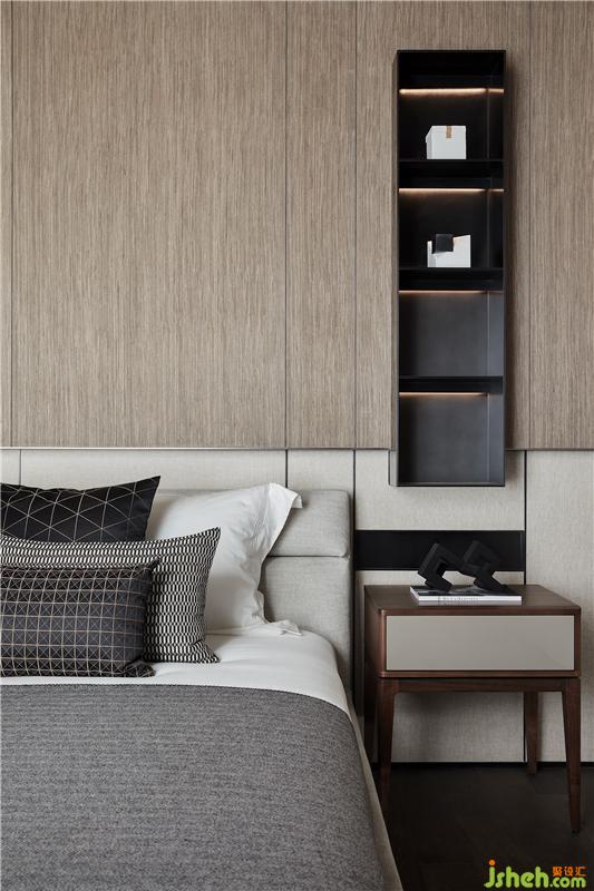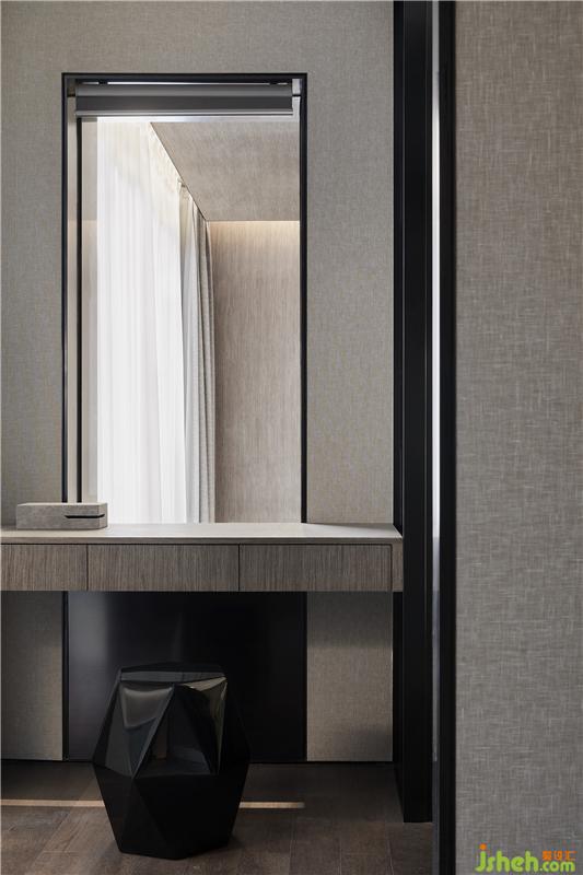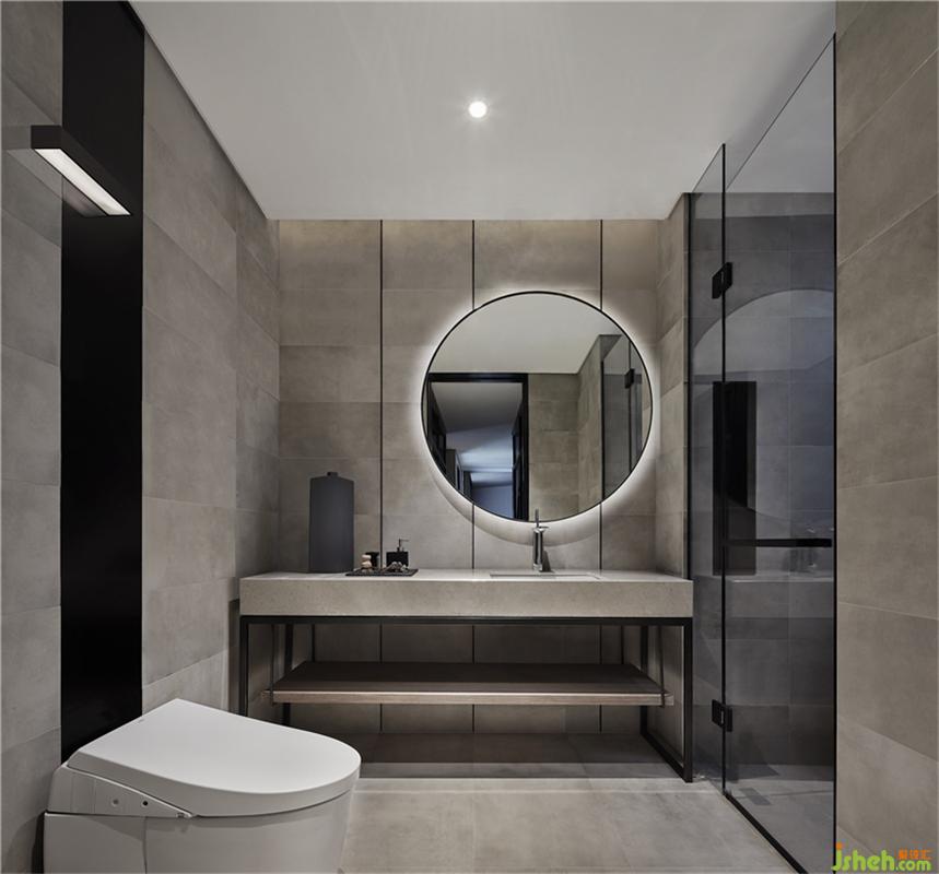 主衛(wèi)墻面、地面由同款石材一體而成,置入圓潤的鏡面,可謂干練之中恰到好處的融合與均衡。樣板房設(shè)計(jì)
