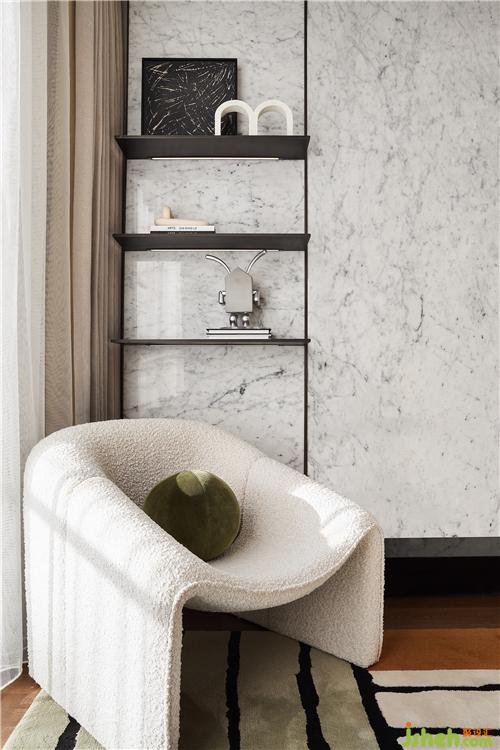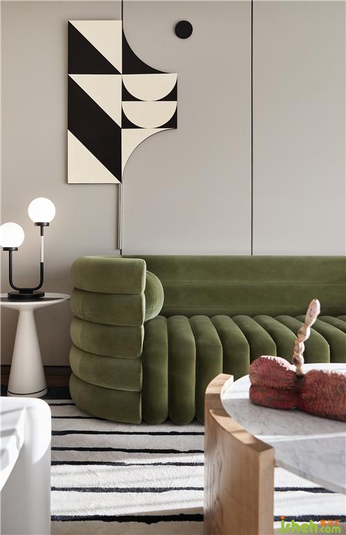 區(qū)別于以往的會客模式,當代客廳更加注重人的情感接收與表達??蛷d避開了方正轉角,采用包裹狀的、動態(tài)的陳設,以一種隨性的維度詮釋別樣的體驗與愉悅。