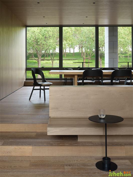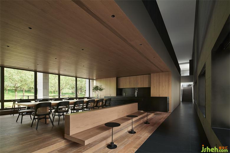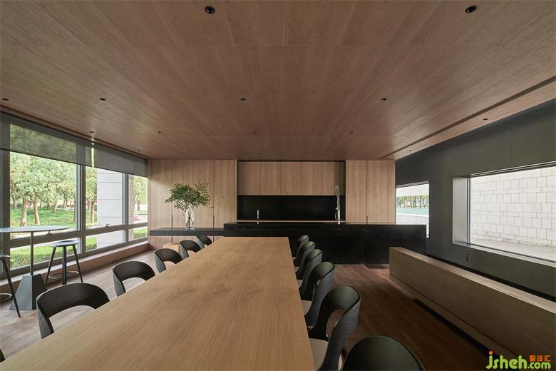 辦公室設(shè)計挑空處通道,仿若悠長的小巷。循步深入,餐廳予以木質(zhì)包裹出靜謐之感,多元的落座形式,高低錯落的關(guān)系勾勒輕松的氣氛。