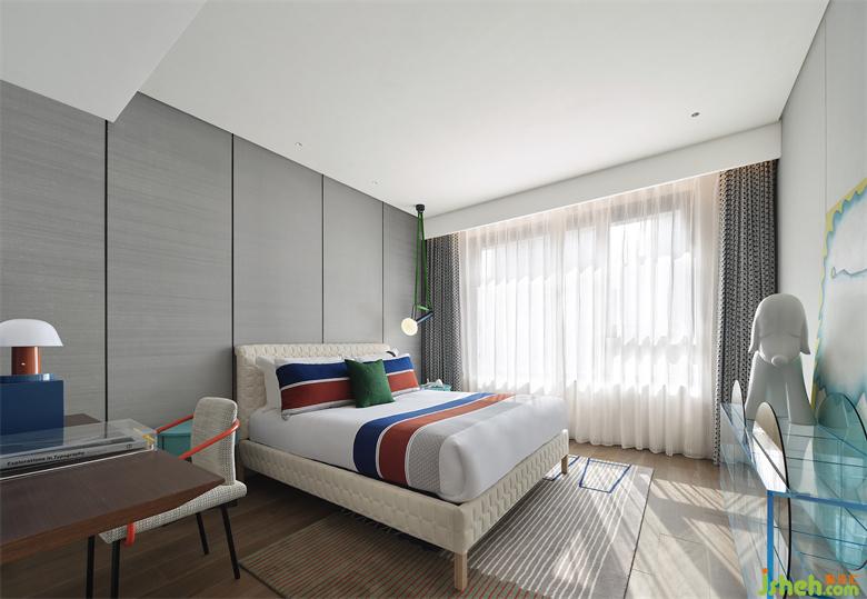 在兒童房引入現(xiàn)代藝術(shù)解構(gòu)主義,對(duì)色彩、形式進(jìn)行打碎與重組,模糊童趣與沉穩(wěn)的邊界,增加靈活性,也營(yíng)造出令人心安的暢游之境。
