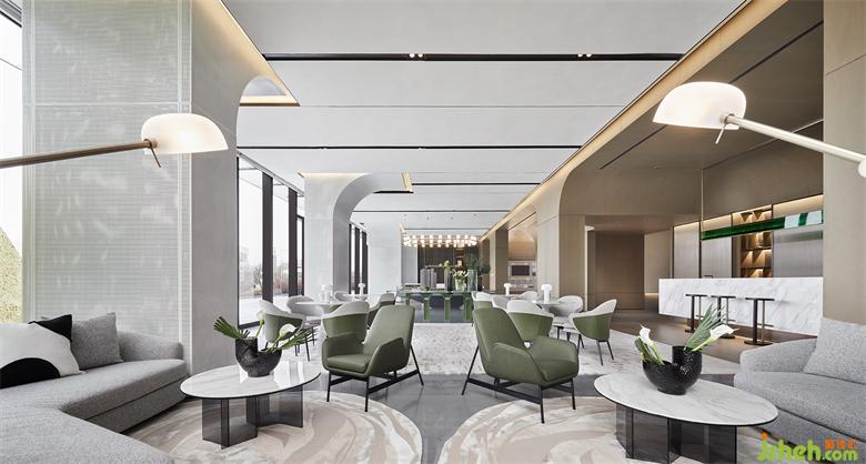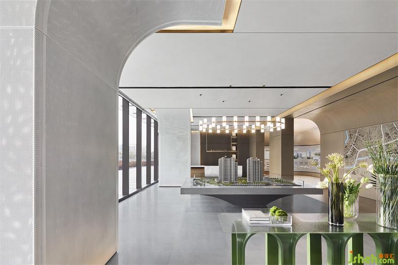 訪客視線隨著多樣元素的層疊錯落,輕松、舒適的洽談區(qū)域便呈現(xiàn)在眼前。得益于對透視法則的精準把控,多種落座形式的布局,尺度感與秩序性依舊合理且清晰。南京售樓處設計臨窗處,沙發(fā)、飾品的形狀,同樣飽含深意,與弧形的建筑外立面巧妙關聯(lián)響應。