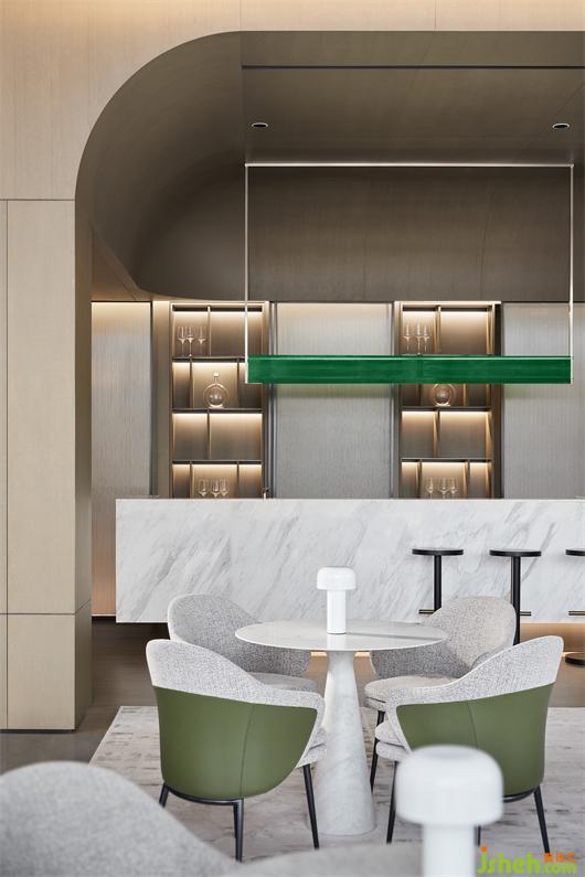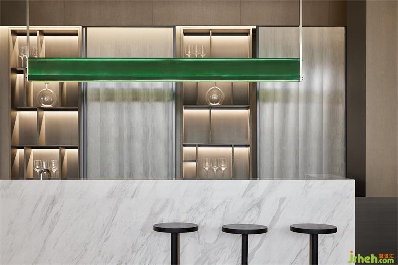 盎然生機與都市人文相遇,精雕細琢的水吧區(qū)隨即而出。延續(xù)了一貫的設計手法,干練的線條與規(guī)整的廓形構成微妙平衡。玻璃移門的開合變化,也賦予多元的表情。
