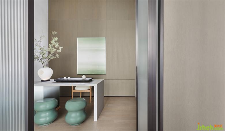 瓦楞玻璃將光線引入茶室,一桌一椅,獨(dú)自成景,又相映成趣,靜謐安心充盈其間。南京售樓處設(shè)計(jì)燒香、點(diǎn)茶、掛畫(huà)、插花,為古人的“四般閑事”,也可是當(dāng)代人忙里偷閑的自省、休憩之樂(lè)。