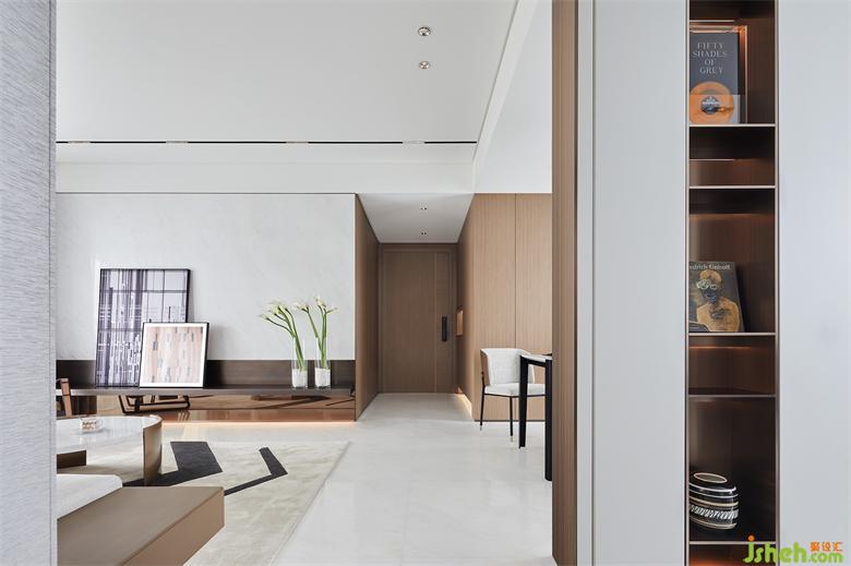 南京樣板間設(shè)計(jì)背景墻一面以線型分割來(lái)增添韻律,另一面則巧妙處理不同材質(zhì)的交輝疊加,映襯出懸浮輕盈感,彼此相望,大塊面之中又不乏細(xì)微的變化,不俗品味悄然釋放。