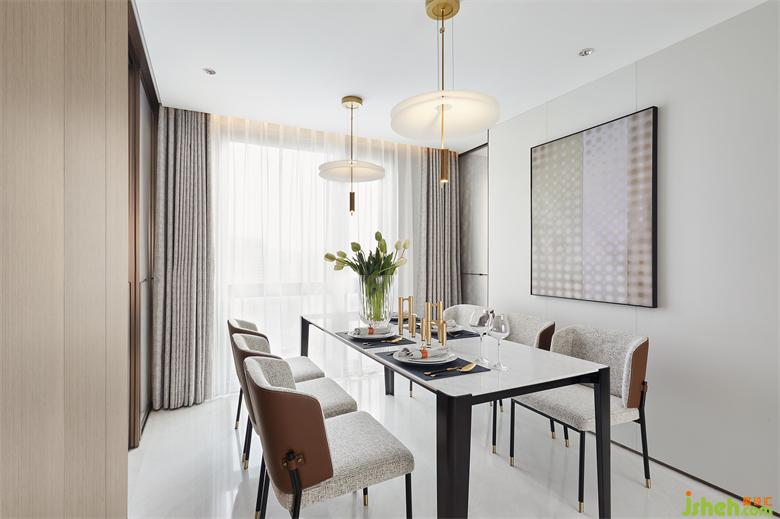 歸家,本該松弛且融洽。南京樣板間設(shè)計(jì)客餐廳一體開(kāi)放式布局,簡(jiǎn)單純粹且質(zhì)感十足,讓都市的俊朗風(fēng)貌躍然流露。