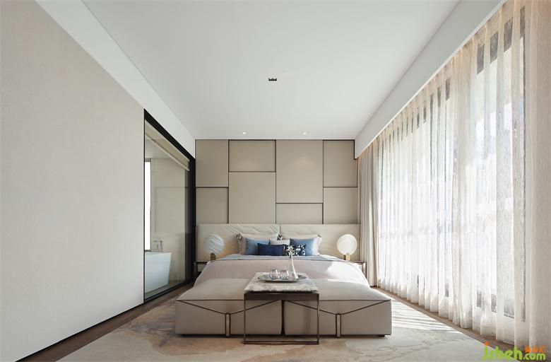 臨海而居的靜謐詩(shī)意充盈著主臥套間。珠海樣板房設(shè)計(jì)臥室以高端酒店的居住體驗(yàn)為參照,大片落地玻璃實(shí)現(xiàn)延展,增強(qiáng)了睡眠區(qū)與主衛(wèi)、乃至窗外的聯(lián)動(dòng)表達(dá),也彌漫開(kāi)柔和浪漫的氣息。