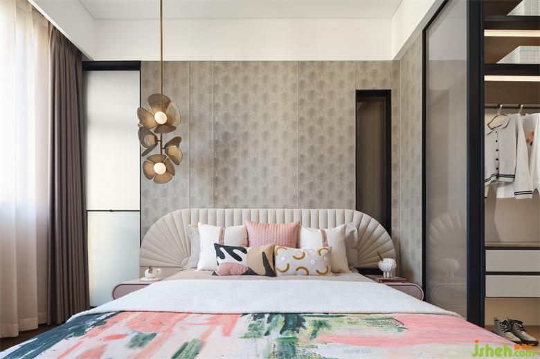 珠海樣板房設(shè)計(jì)留一寸私密休憩處,女孩房從愉悅自我的視角出發(fā),覆以珍珠魚(yú)皮,精致十足又個(gè)性吸睛。并經(jīng)由一塊豎向玻璃與衛(wèi)浴室營(yíng)造虛實(shí)之境,無(wú)形中激發(fā)呼吸感與情趣性。