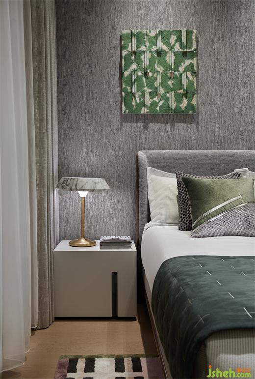 主臥套間同樣從自然界汲取靈感,糅合色彩、光影、紋理元素,這既有著對(duì)客餐廳一脈相承的延續(xù),南京樣板間設(shè)計(jì)又基于睡眠區(qū)的實(shí)際考量加以變通,不乏寧?kù)o安逸之感。人文關(guān)懷從不缺席,圓與方,硬與柔,漸變轉(zhuǎn)換,虛實(shí)交雜,在視覺(jué)與觸覺(jué)的雙重感官下,孕育著豐滿的層次。