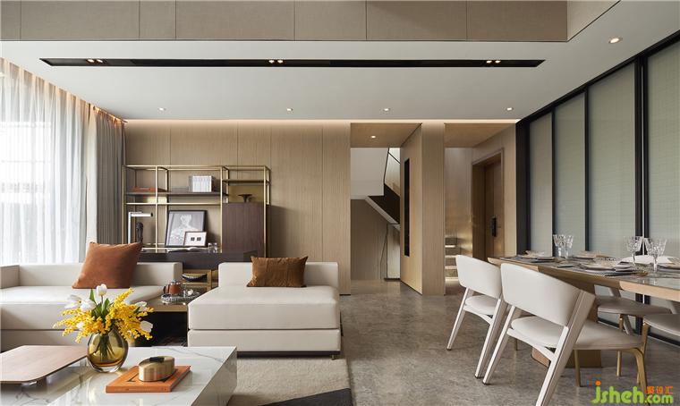 光影隨著木格柵一同律動(dòng),相互滲透,虛實(shí)結(jié)合,樣板間設(shè)計(jì)于精奢的質(zhì)感之中也創(chuàng)造出獨(dú)特的疆域。