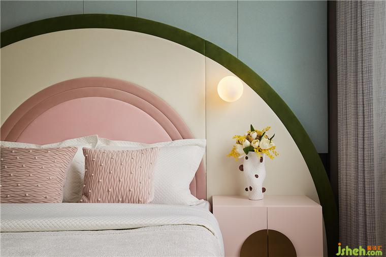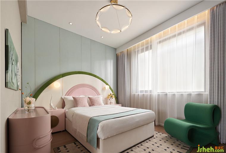 以童趣視角作為情感鏈接,兒童房巧用馬卡龍色系,細(xì)膩的粉、生機(jī)的綠、樣板間設(shè)計(jì)以及柔和的藍(lán),配合靈動(dòng)的造型,以此進(jìn)一步引導(dǎo)多元感知。