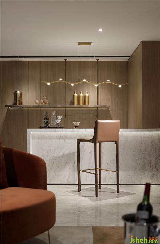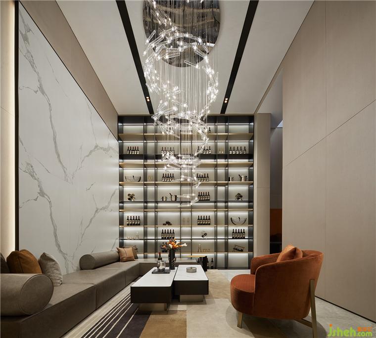 在挑高達(dá)4.9米、擁有開闊空間廓形的地下室,依托建筑結(jié)構(gòu)來延展設(shè)計(jì)語言,樣板間設(shè)計(jì)以大方且實(shí)用作為出發(fā)點(diǎn),匯聚會(huì)客、社交、娛樂、品酒、閱讀場(chǎng)景,滿足現(xiàn)代都市人的多維需求,迸發(fā)著無限的活力。