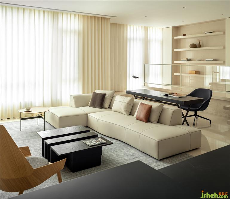 起筆于全方位的開放互聯(lián),自由溫暖的主張貫穿全局。厘清空間邏輯及多重關(guān)系,探尋各分區(qū)的自在滲透,疊墅設(shè)計(jì)以靈活的洄游動(dòng)線、“空”與“簡(jiǎn)”的面貌將多個(gè)生活場(chǎng)景串聯(lián)起來。垂簾搖曳,柔和的日光灑入,將整體氛圍烘托的愈發(fā)迷人。