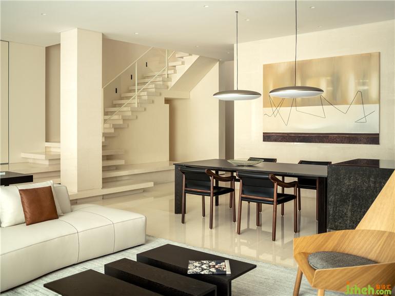 觀其狀,描其境,透過近景玄關(guān)、中景過渡、遠(yuǎn)景客廳的套景手法,由收到放、逐步推引。注入變幻的光影,疊墅設(shè)計(jì)相應(yīng)的抽象情緒也隨著視覺落點(diǎn)而轉(zhuǎn)換,在感性與理性的交融之中豐盈家的內(nèi)核。
