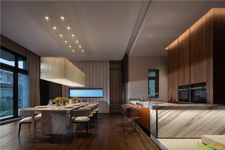 常州天安別墅設(shè)計以融洽的存在,表達靜謐自由的本色。將木盒子渾然嵌入,中廚于內(nèi)、西廚于外,這包含著對每一寸空間的周全應(yīng)用,也是對功能需求的完善與補充。