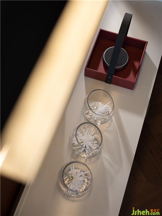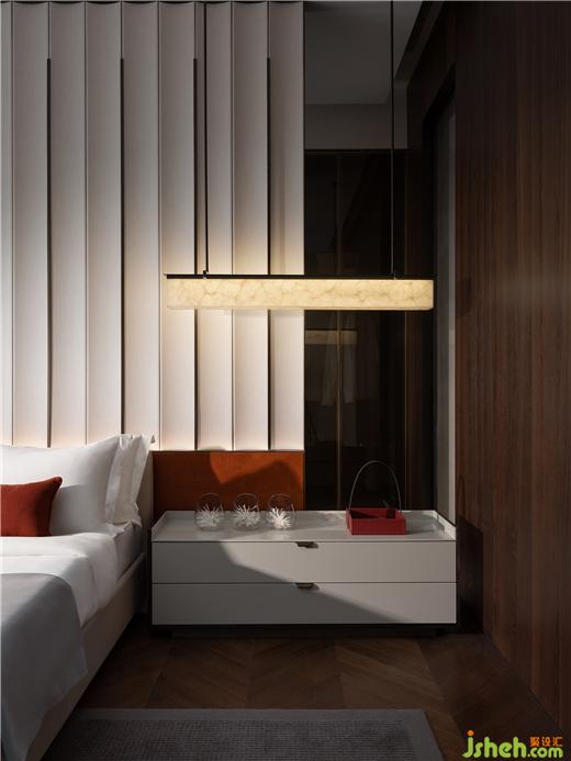 酒店式居住感受,切實落筆在體驗層面,主臥套間可謂對此深度踐行。常州天安別墅設(shè)計主背景顯著的線條韻律、內(nèi)凹的弧度極具包容撫慰之感,清晰可見其與一樓一脈相承之意。非對稱的床頭柜設(shè)計,也蘊含著對上下體量、前后交互的思考。搭配兩側(cè)留白,提升感官的從容呼吸。