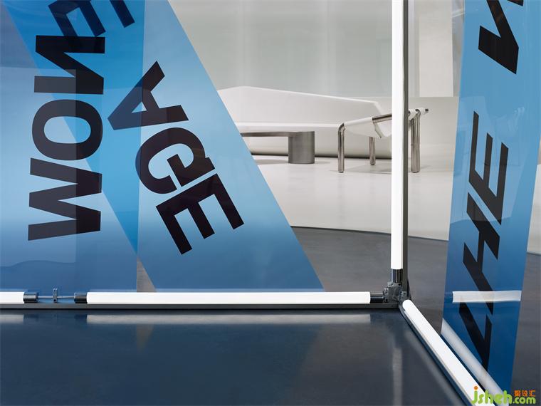 企業(yè)展示區(qū)以留白思維切入,加以跳色與燈光處理,描繪當(dāng)下與未來的功用。它既為展示載體,也是展示主體,輕盈透明的藝術(shù)裝置作為核心樞紐,辦公室設(shè)計(jì)可輕松實(shí)現(xiàn)邊界消融、無限延展的效果。