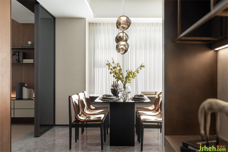 餐廳,薈萃著家的愛意與溫暖。作為入戶后顯著一景,其靚麗的色彩、舒暢的氛圍、錯落的構(gòu)造,多元層次呼之欲出。上海樣板間設(shè)計在材質(zhì)選取、元素運用與造型語匯上,亦注重一脈相承,強化整體概念。