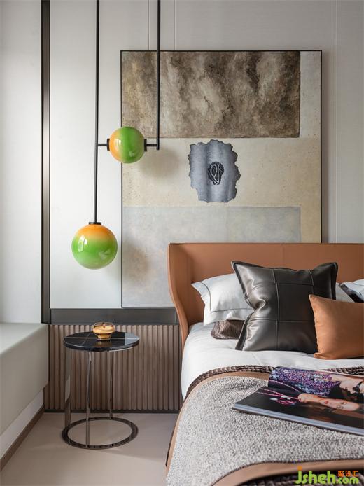 在低調(diào)中流露沉穩(wěn),于簡約中鑄就細節(jié),主臥套間借助輕盈的線條、嫻熟的構(gòu)成手法、以及塊面與圓弧的順暢交融,氤氳著深層的內(nèi)涵與意味。梳妝桌與床頭柜一體成型,在起伏中極具互動性與關(guān)聯(lián)感。