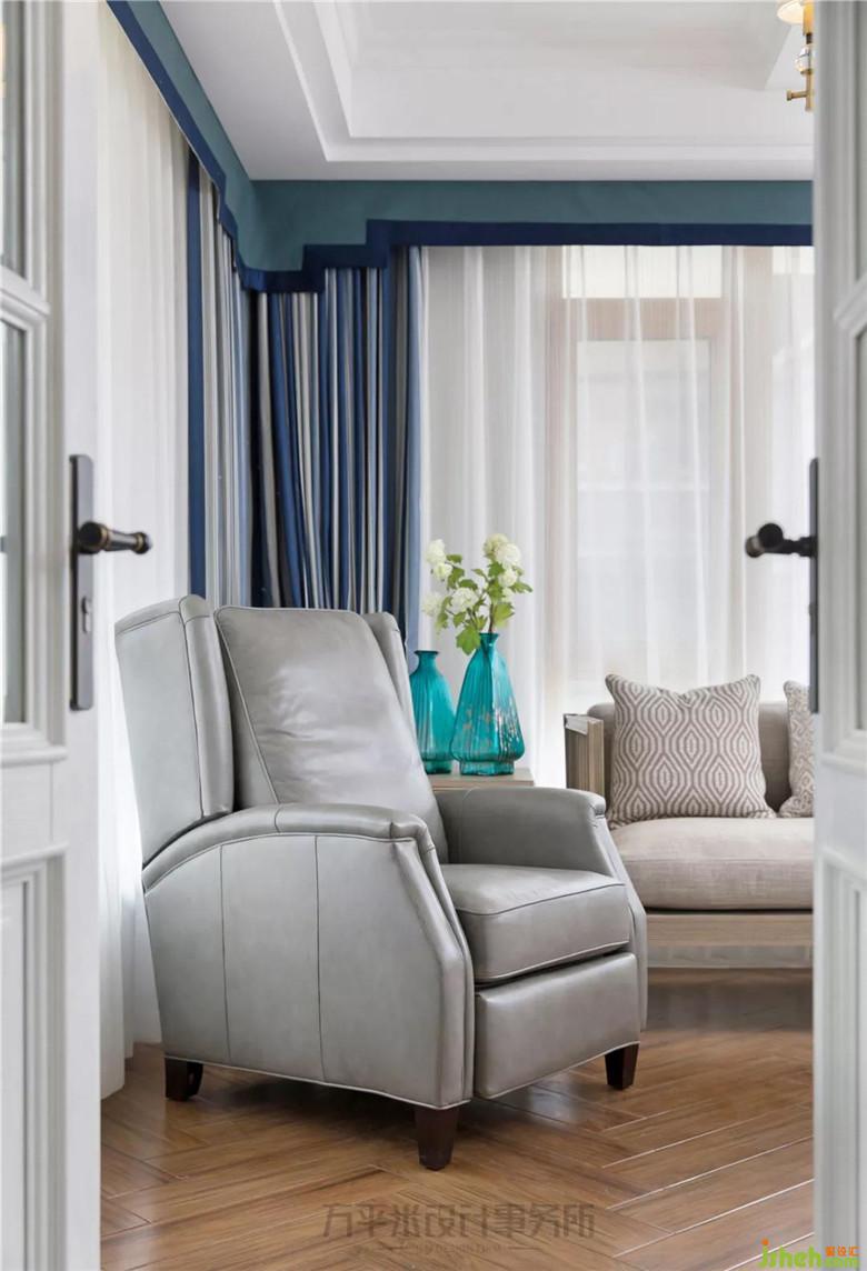 擺放淺木色布藝寬敞沙發(fā)主位,搭配可躺可坐的舒適功能單椅,相較開闊正式的客廳,明亮?xí)扛顺蔀橐患胰诵蓍e上網(wǎng)、促膝交流或安靜共處的隨意自在空間。