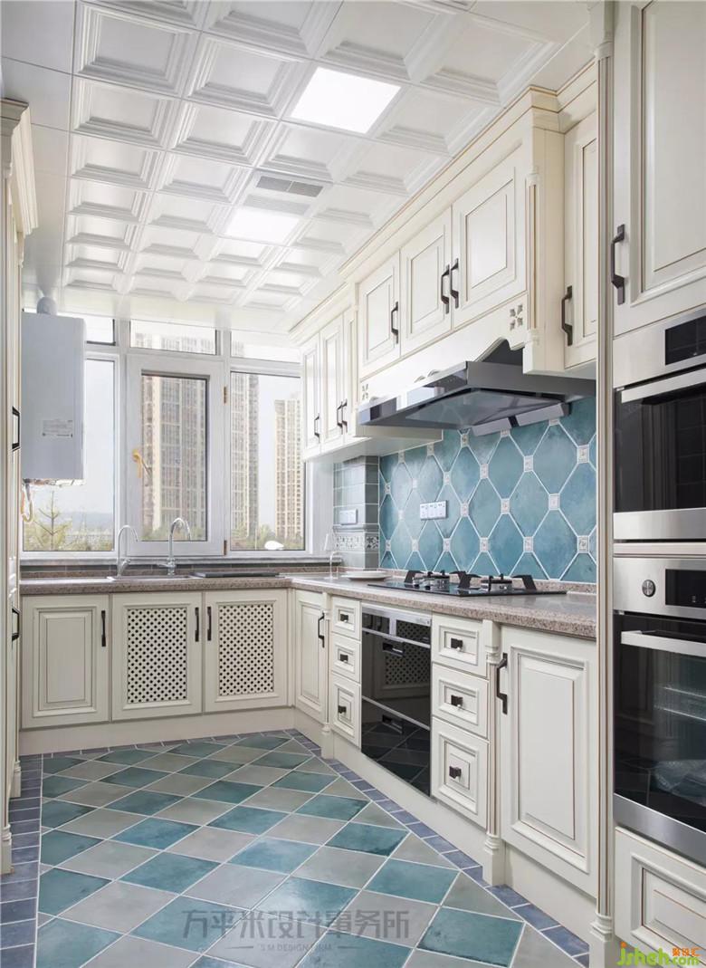 外推后空間寬敞采光良好的廚房,明亮窗外即為綠植及水岸美景。通過極簡的通透清玻移門,將北向自然光線引入餐廳區(qū)域,補(bǔ)充餐廳采光。大型廚電嵌入式安裝于高柜以求操作臺面的清爽。