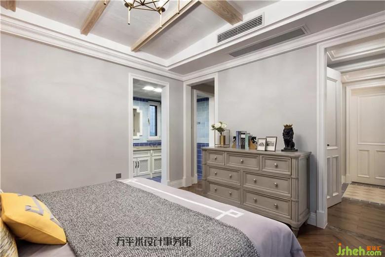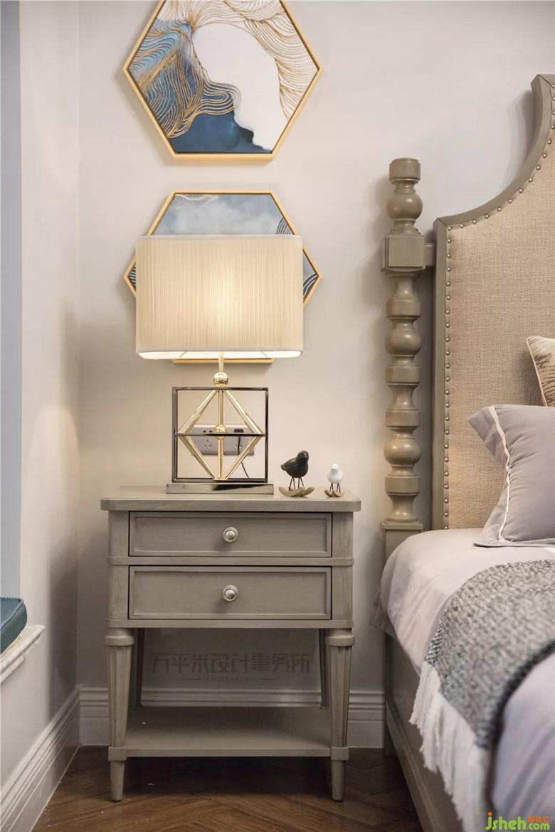 與一樓主臥相似的處理方式,采用兩組背對的儲物邊柜將縱深過長的房間比例平衡,并解決室內(nèi)儲物空間較少的問題。