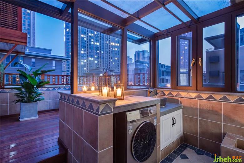 二樓露臺部分采用陽光頂搭設(shè),做出洗曬區(qū)。