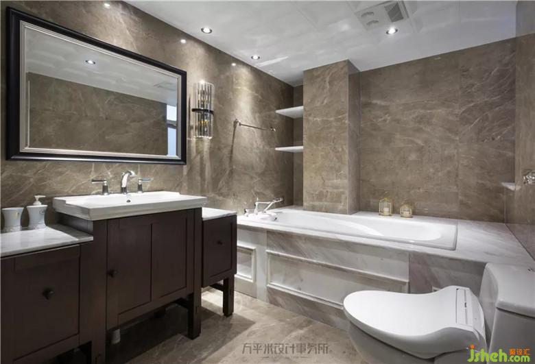 因外推隔墻而變得空間寬敞的主衛(wèi),光潔大理石鋪貼,并因地制宜利用原承重墻體間隙設(shè)置開放式層板置物。高分子板與豆膽燈的結(jié)合令美觀與實用并存。