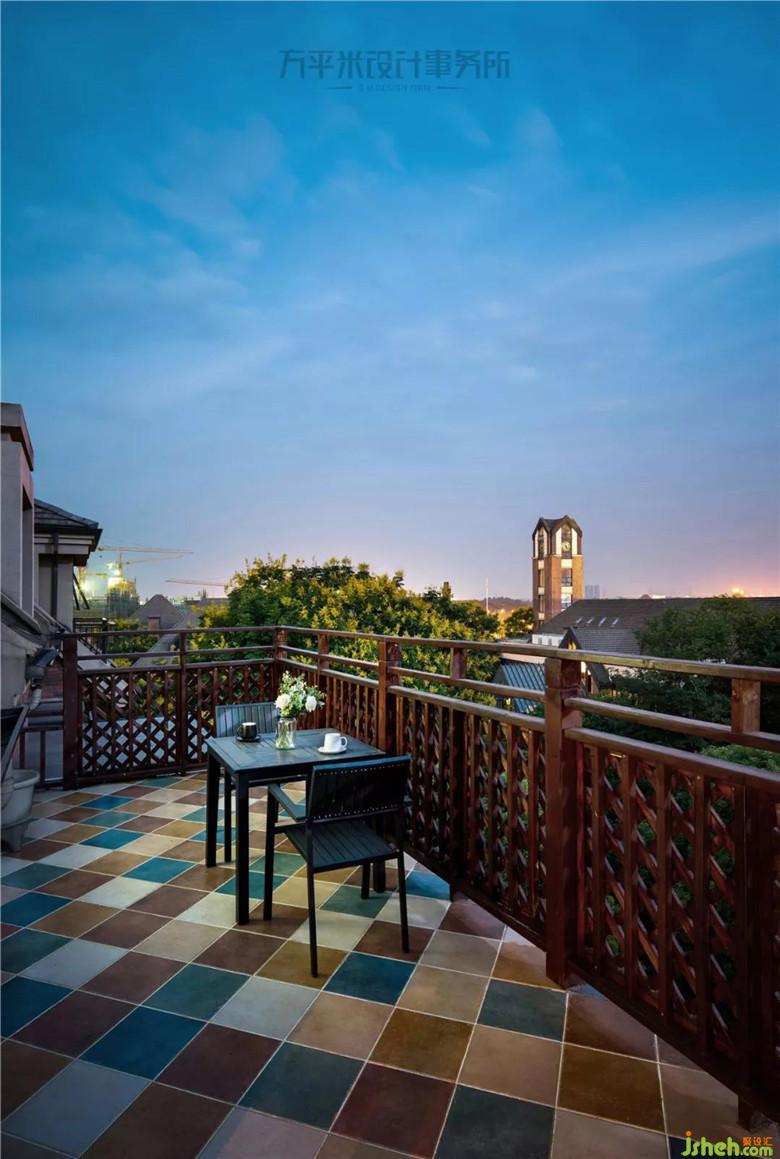 步出房間來到增設(shè)的露臺區(qū)域,女主人計劃在此種植花卉,于花叢中品茶與小憩。