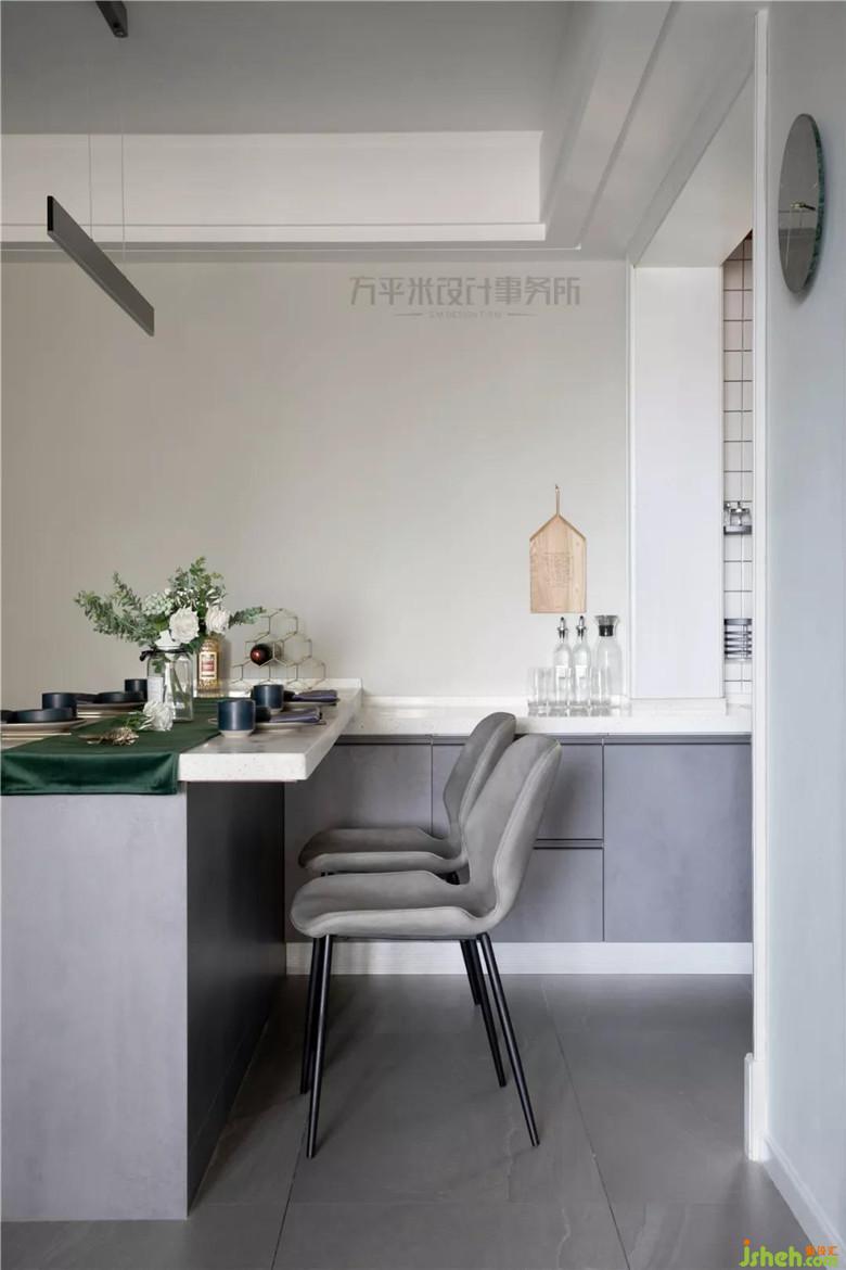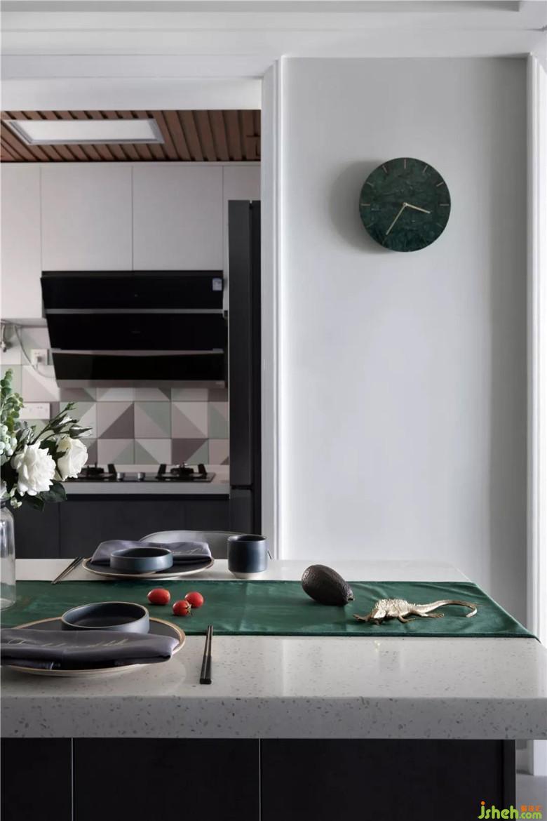 相鄰空間形成一體,功能性及空間感均有提升。對開門冰箱嵌入墻體轉角一側,不顯突兀。