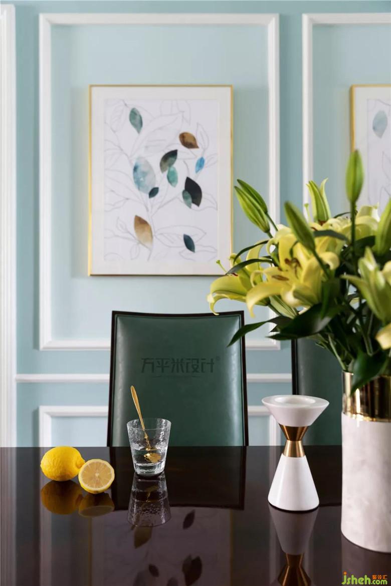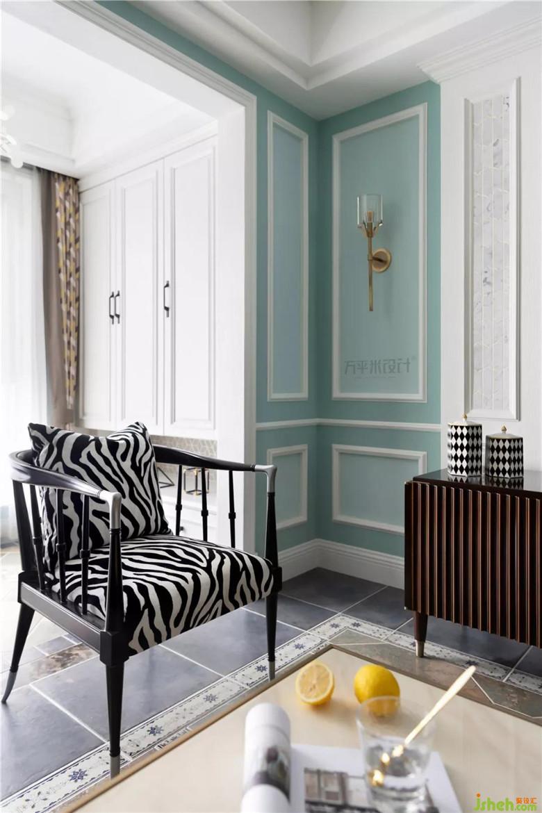 兩側(cè)木作造型將沙發(fā)主位內(nèi)嵌式設(shè)置,層次分明更具立體質(zhì)感。家是女主人的名片,她演奏的美妙樂(lè)曲,使這張色彩夢(mèng)幻的名片更添古典魅力??蛷d與陽(yáng)臺(tái)間的原始隔墻內(nèi)移后使陽(yáng)臺(tái)可放置鋼琴。鋼琴頂部吊柜增添收納。定制的灰白大理石馬賽克內(nèi)嵌于美式造型線框內(nèi),使大面積淺色觀影背景視感舒適亦有格調(diào)。