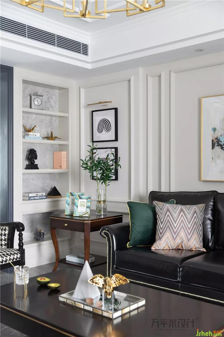 奶咖的溫柔墻色融入黑白灰的雋永低調(diào)中,統(tǒng)一的低彩度空間中,因復古墨綠與纖細沙金的點綴,璀璨燈光傾瀉之下,渲染神秘而優(yōu)雅的獨特魅力。黑白幾何的裝飾畫,應對千鳥紋的古典圖案,賦予經(jīng)典紋理現(xiàn)代之美。