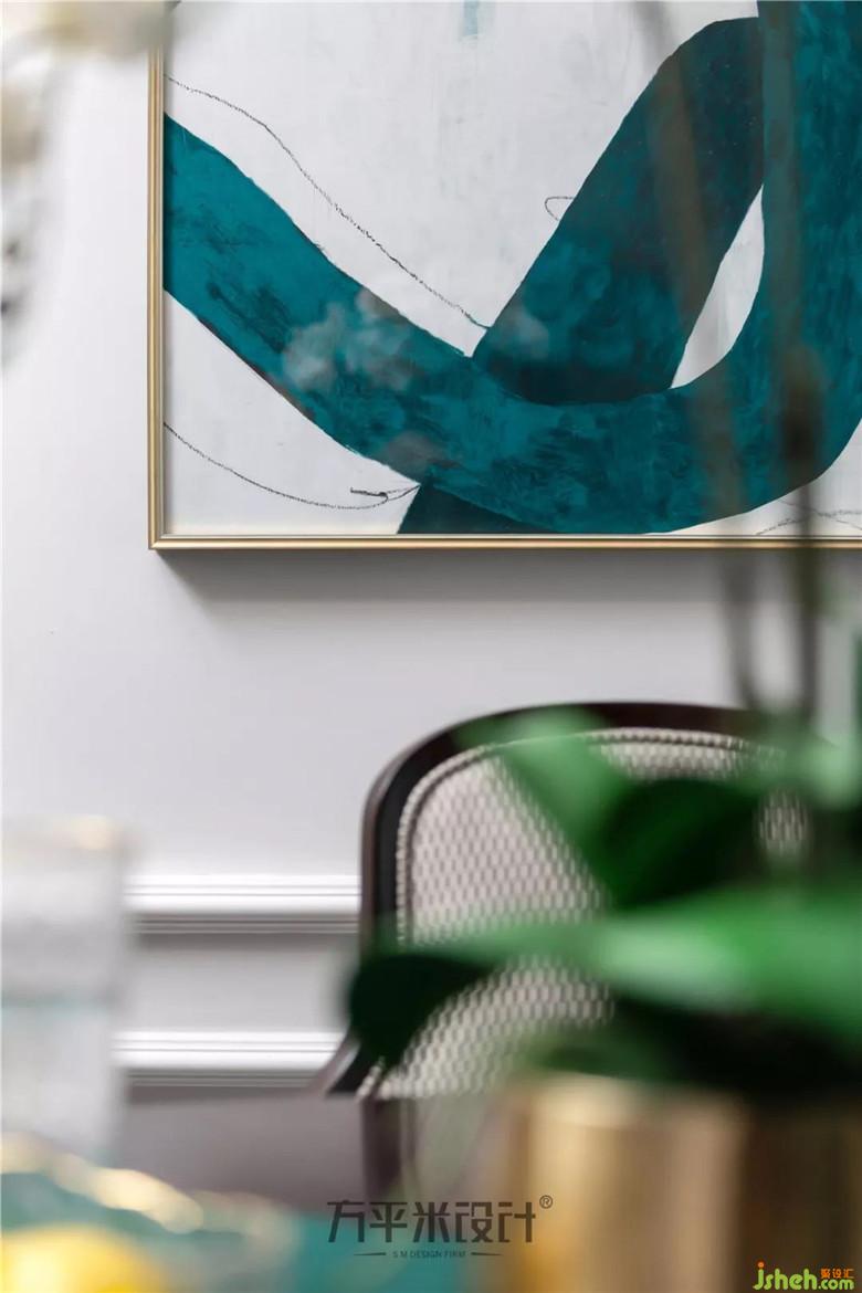 廚房洗切炒盛的動線設置合理。少許加長的廚房隔墻將對開門冰箱嵌入,更為美觀。
