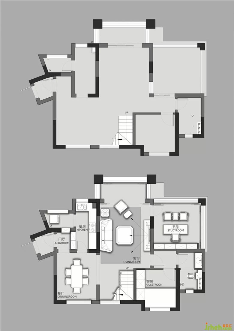 瑜伽室與過(guò)道之間制作拱形造型門(mén)洞,與一層客餐廳間門(mén)洞造型遙相呼應(yīng)。