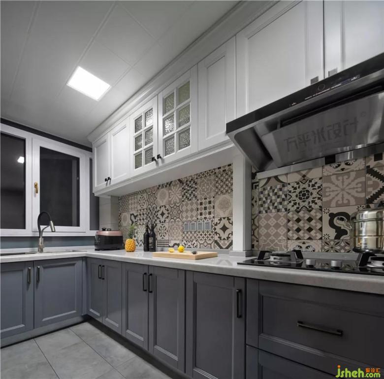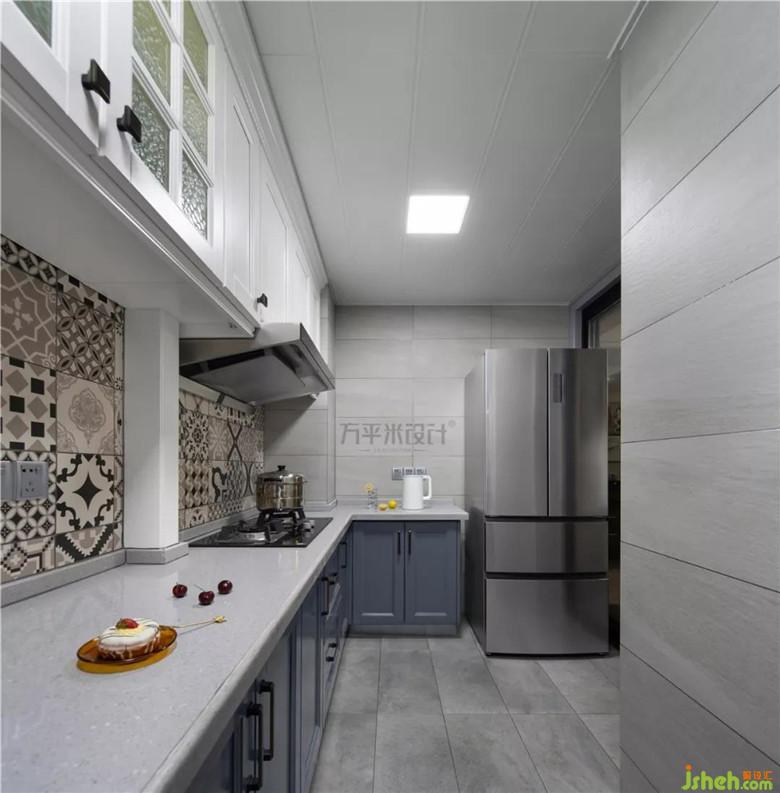 原本廚房面積不大,將生活陽臺空間并入后,又調(diào)整了入口位置,使廚房擁有了寬松的L型操作臺面。洗切炒盛的動線更為合理。