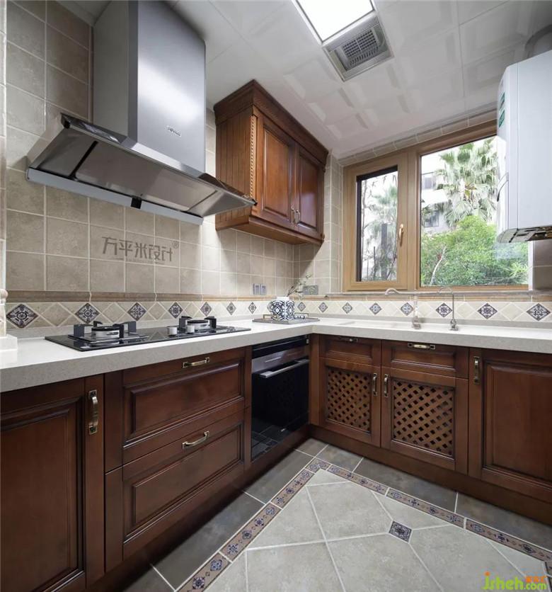 樓梯間綠色波導(dǎo)線和菱形地磚互相襯托,這也是古典美式風(fēng)格的元素代表。一樓除了運(yùn)用布法羅方格花磚的鋪貼之外,樓梯側(cè)板采用了巴洛克花紋地磚,單雙交錯穿插的變化,摒棄了一貫樓梯間的呆板樣式。