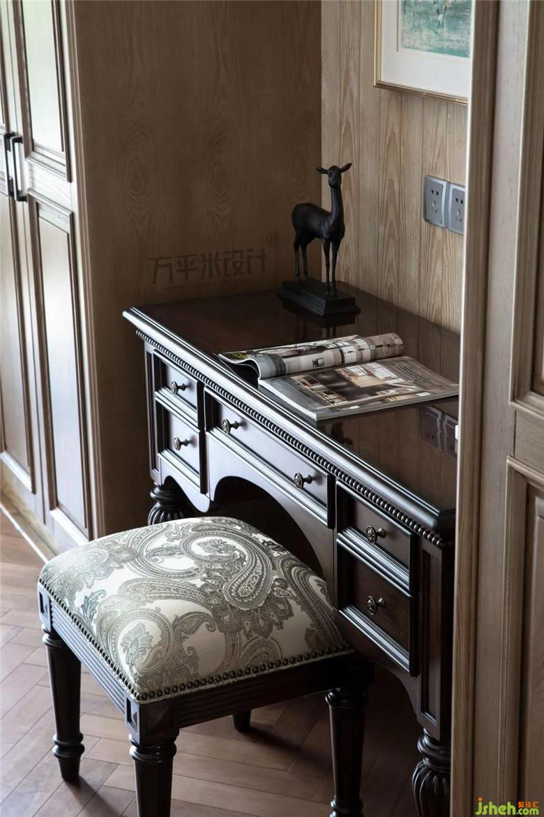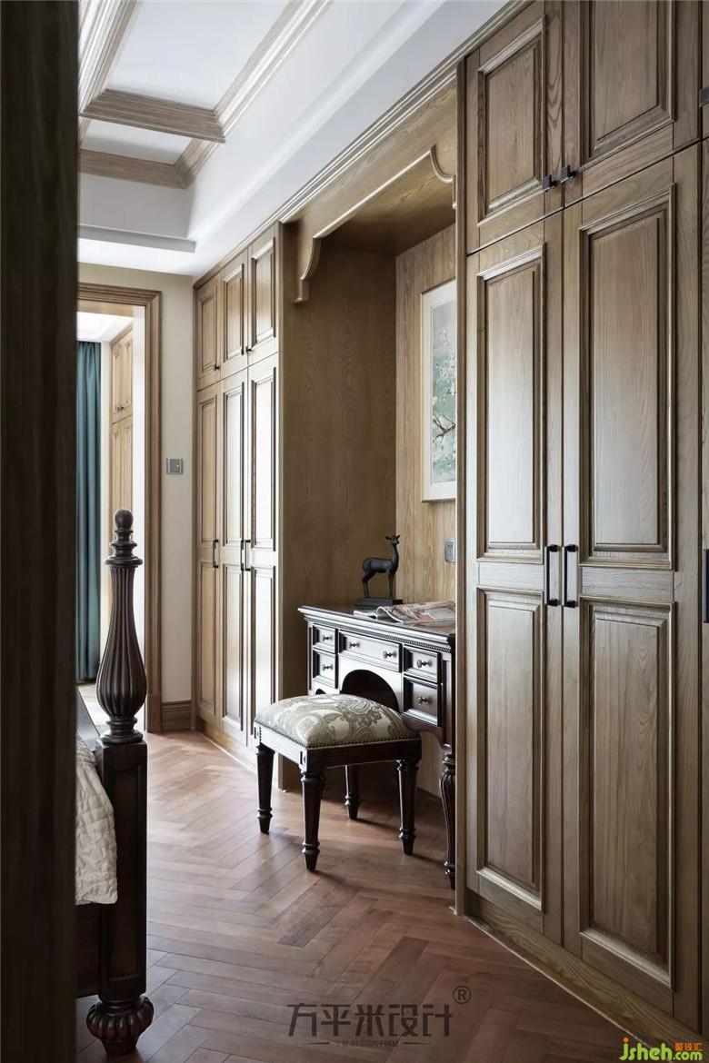沉著冷靜的色調(diào)更顯屋主沉穩(wěn)內(nèi)斂的調(diào)性追求,梳妝臺(tái)內(nèi)嵌入衣櫥,在每個(gè)清晨都會(huì)迎來(lái)它的主人,妝點(diǎn)著生活的每一場(chǎng)精致。