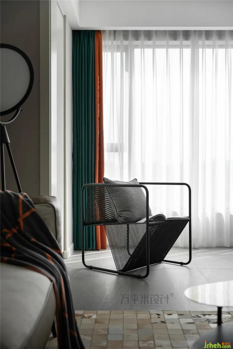 休閑陽(yáng)臺(tái)與客廳實(shí)現(xiàn)無(wú)隔閡的空間感,烤漆擺件臺(tái)呼應(yīng)窗簾的跳色元素,穩(wěn)重不失俏皮感,平衡整體的視覺暖度。