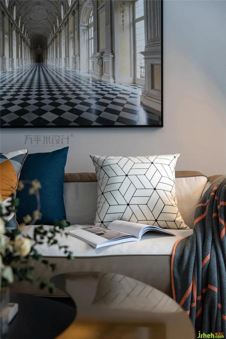 精選墨綠色懶人椅,馬賽克毛絨地毯,宮殿裝飾畫等豐富空間的視覺效果,從低彩度色調(diào)中跳脫出來,增添居家的生活感。