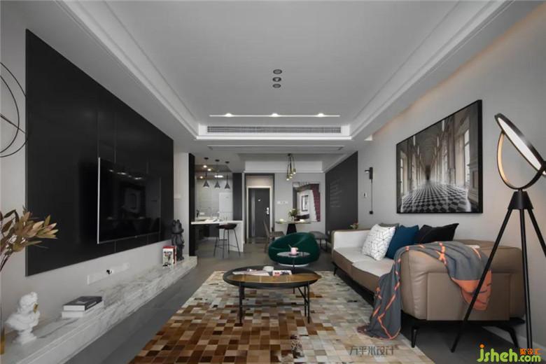 為了保留黑色的酷感,又不想讓空間過于沉悶,選擇靈活纖細的茶幾桌,趣味性的燈飾來保持空間的輕盈度。