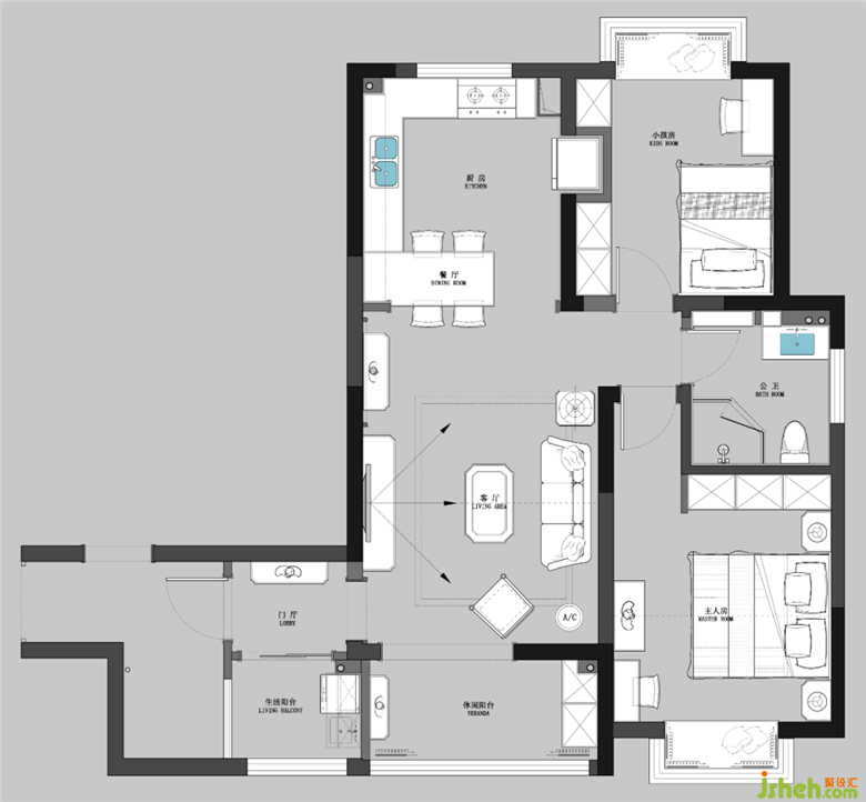 主臥灰白交織的優(yōu)雅色調(diào)