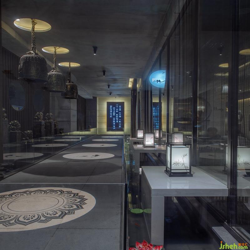 青磚黛瓦、流水砂石、鐵銹高山流水、曲線形的馬鞍墻,室內(nèi)設(shè)計(jì)師以一處承禮東方的建筑表達(dá),構(gòu)起舊九江的綿綿印記——古樸而雅澹,清幽而閑趣,喚起人們積淀的精神記憶與文化自信。