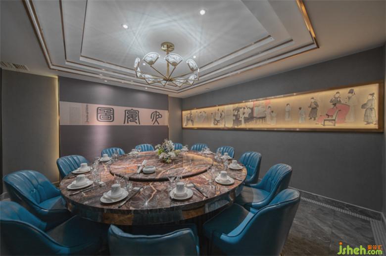 屋內(nèi)輕系著柔白紗簾的包廂,灰白相間的地面,帶有質(zhì)感桌椅,門(mén)件柜體上點(diǎn)綴的黃銅配飾,所有質(zhì)樸的色調(diào)通通席入眼底,緊密編織成與都市喧嘩顯示高反差的怡然寧?kù)o;這股寧?kù)o,依循日光的走向,彌漫到另個(gè)廂房。