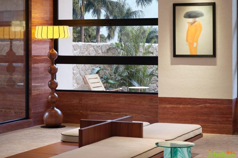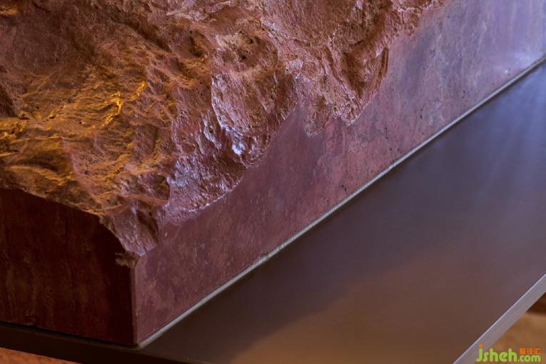 酒店設(shè)計(jì)外立面選用紅色天然大理石,熔漿的意象從內(nèi)部自然的漫延而出,與周圍的自然環(huán)境形成鮮明對(duì)比,如同海島上的一抹熱情,點(diǎn)燃著每一個(gè)游客的目光與心情。