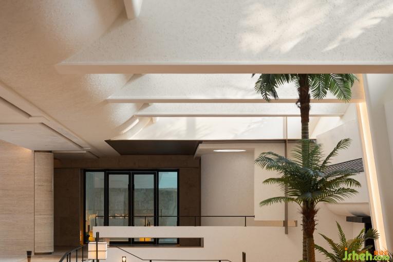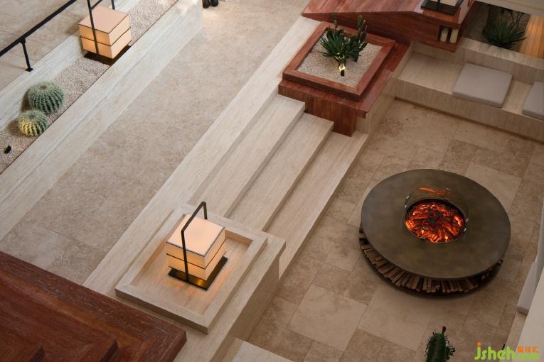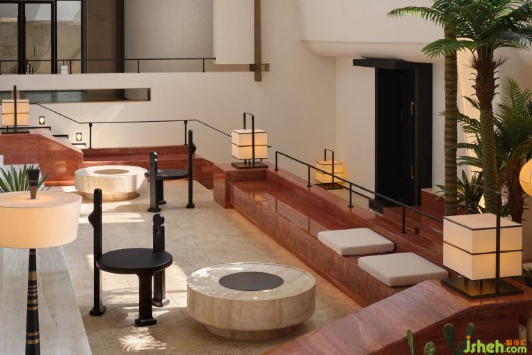 酒店設(shè)計(jì)在公區(qū)的核心空間,我們創(chuàng)造性地利用了天井與下沉空間,打造了一方“綠洲秘境”。自然光從頂部被巧妙地引入室內(nèi),光線與陰影為內(nèi)向型的空間注入生動(dòng)與靈性。