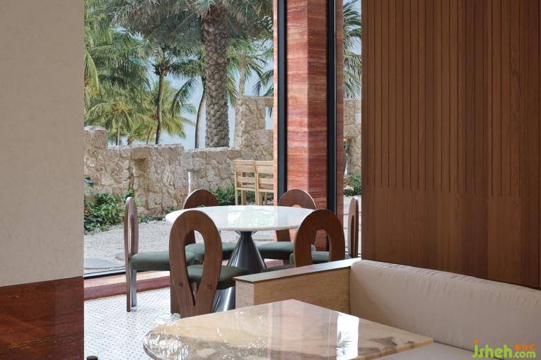 為了讓住客一走進(jìn)入璞宿酒店的公區(qū)大堂,就能感受到在地最重要的地理元素,我們選擇了一整塊紅色天然石材制作成為的接待臺(tái)。紅色是有關(guān)于火山熔巖的隱喻,邊角處自然的缺痕肌理,既可以被視為動(dòng)態(tài)噴涌被凝固的瞬間,也是描寫(xiě)海蝕地貌特征的輪廓,它就在那里安靜的存在著,在璞宿續(xù)寫(xiě)著讓每一位客人在踏入的一刻,就與這片土地的歷史與故事相連接。