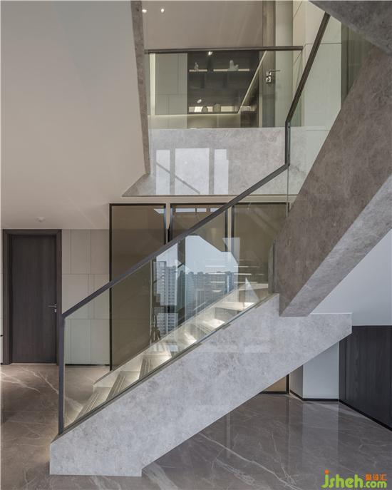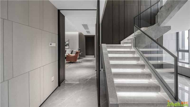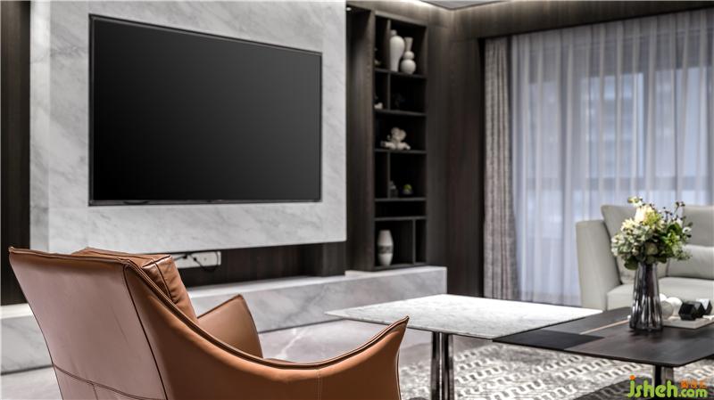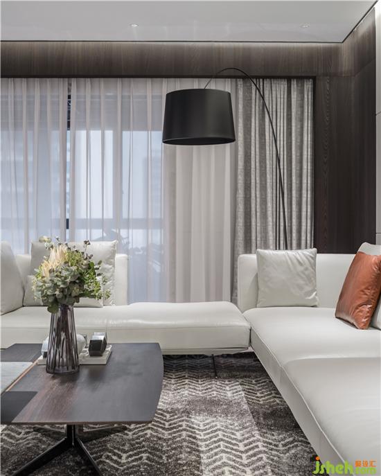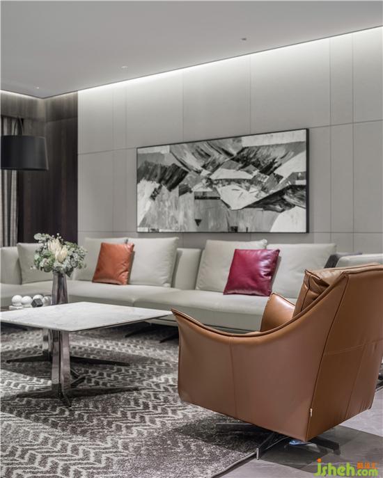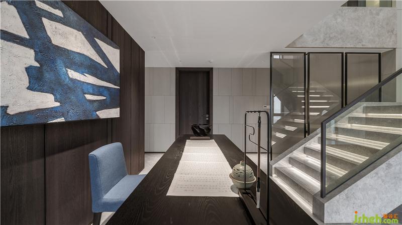 起居室大面積的書墻除了造型層面之外,更加賦予空間產(chǎn)生在人文方面的強(qiáng)烈氣息。