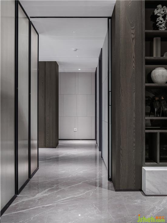 衣帽間簡潔的直線造型,營造出清爽的功能構(gòu)成,黑框玻璃推拉門時(shí)尚又精致。呈現(xiàn)出對生活細(xì)節(jié)的推敲。家裝設(shè)計(jì)