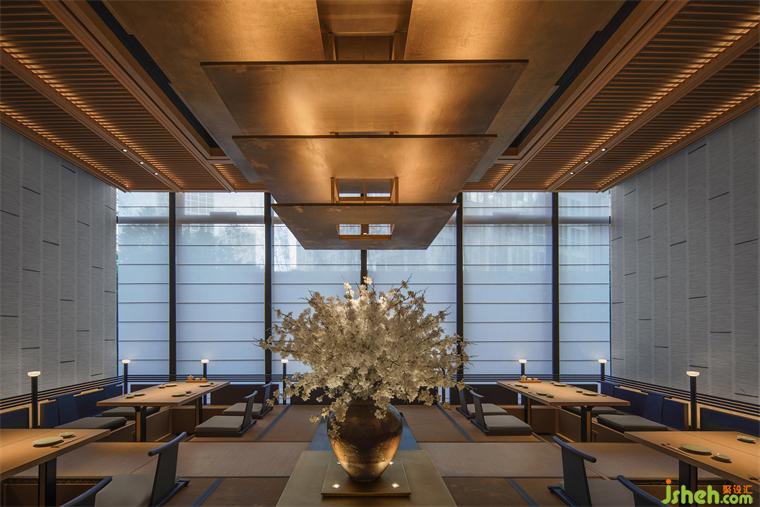 正是以此為出發(fā)點(diǎn),一路溯源至關(guān)西的文化重鎮(zhèn)——京都。在這座千年古都的神社、佛閣、庭院、繪畫中,汲取了諸多意象,結(jié)合對(duì)傲鰻品牌精神的理解,從空間的結(jié)構(gòu)、材質(zhì),到場(chǎng)景的塑造,將美食、文化、設(shè)計(jì)恰如其分的融合,形成了獨(dú)有的空間體驗(yàn)。