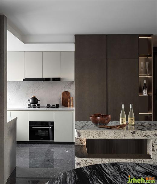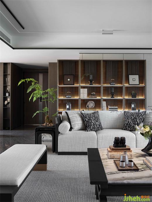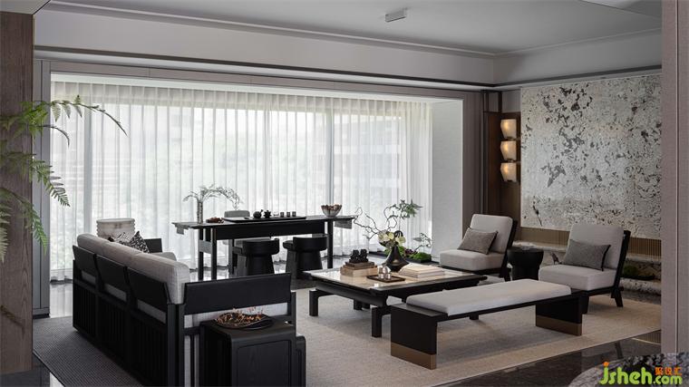 以現(xiàn)代之形,續(xù)寫東方美意。簡約內斂的新中式家具在空間中,寧靜沈穩(wěn);古樸雅致的石雕與瓷器,點綴延續(xù);古今形態(tài)得到統(tǒng)一,是故事的傳承,也是新的開始。