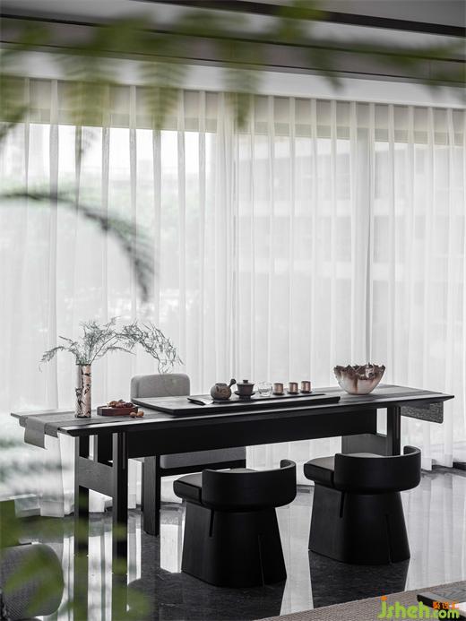 設計師認爲,家作爲銜接情感記憶的空間,應打破傳統(tǒng)茶室?guī)淼木嚯x感,形簡、存意、富有底蘊,以純粹自然爲本,塑造當代人的詩意場景。